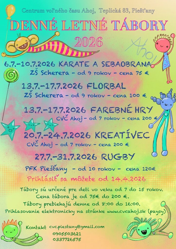 PRIHLÁSIŤ NA TÁBOR : https://paysy.app/reg/centrum-volneho-casu-ahoj/registracia-denne-letne-tabory